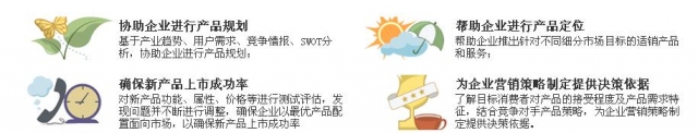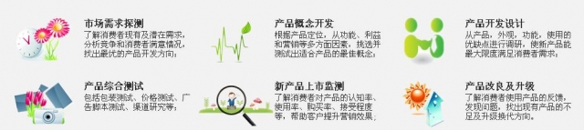 产品研究主要应用于快速消费品,如食品、饮料、日用品、化妆品、烟草、酒水等行业,在医药、IT数码产品行业也有广泛应用
