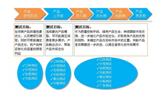 产品测试伴随在产品棵周期的整个过程中,在不同的阶段为实现不同的测试目标,企业都必须进行相应的产品测试: