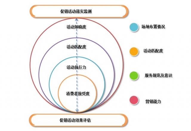 了解促销过程是否按照要求规范、有效地开展。监测内容包括:场地布置、活动匹配度(包括时间、地点、活动承诺等的匹配情况),服务规范、服务意识和营销能力,同时在监测的基础上进行活动优化。